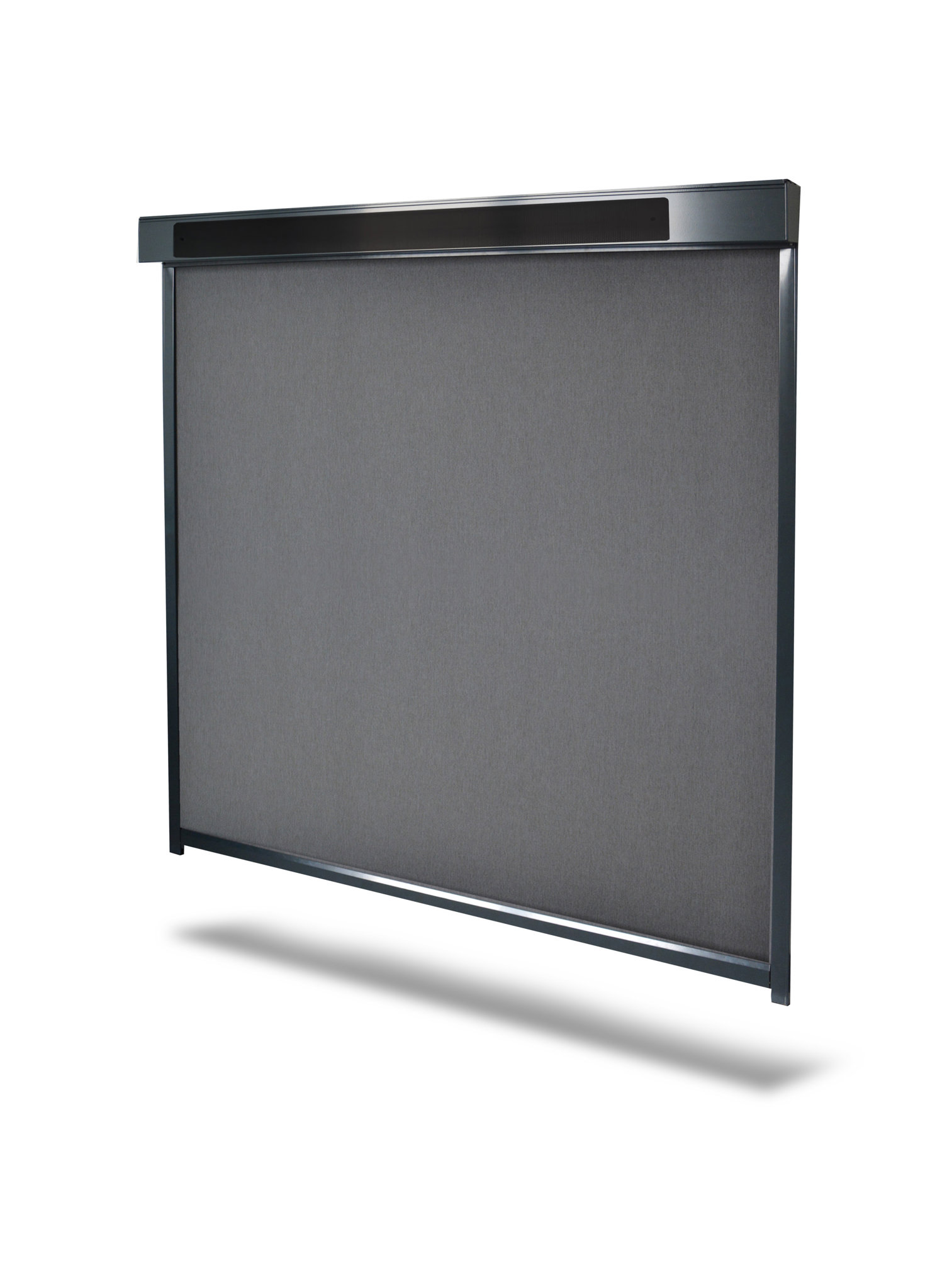 The Alfa Solar screen roller shutter with exterior solar power is a unique and fully automated roller shutter that is no-wire controlled and has zero electricity consumption. This roller shutter works on the principle of the so-called photovoltaic effect – i.e. the conversion of sunlight into electricity.